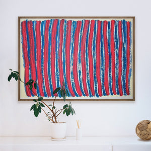 All artworks are quoted and sold on an unstretched basis expect for those noted as pre-stretched in the materials section. Upon request we can sell artworks stretched/framed, this will incur an additional fee and will need to be paid for prior to sending. Please email us for any pre-stretching enquiries – studio@ikuntji.com.au
