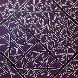 This painting shows Pikilyi (Vaughn Springs) west of Yuendumu. This is Erin's grandfather's and great-grandfather's country. The designs show the skin groups of the Tjapanangkas and the Tjapangardis. The designs represent Pikilyi.