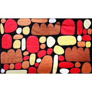 These chain stitched rugs with Keturah Zimran's "Puli Puli - Stones" story are a limited edition, handmade product with a heavy cotton backing.